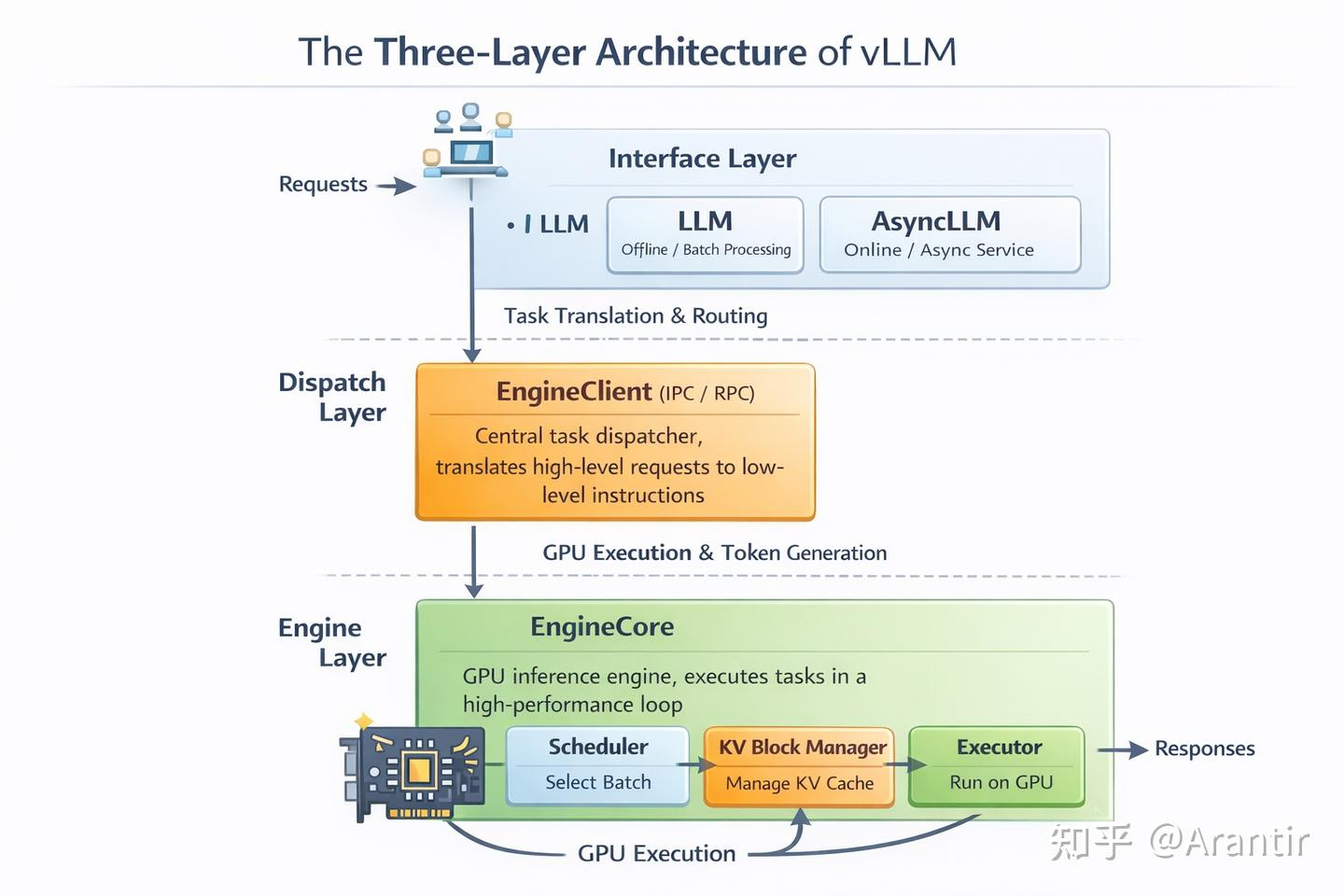 vLLM 三层架构,解耦了 Web 接入、逻辑调度与算力执行。