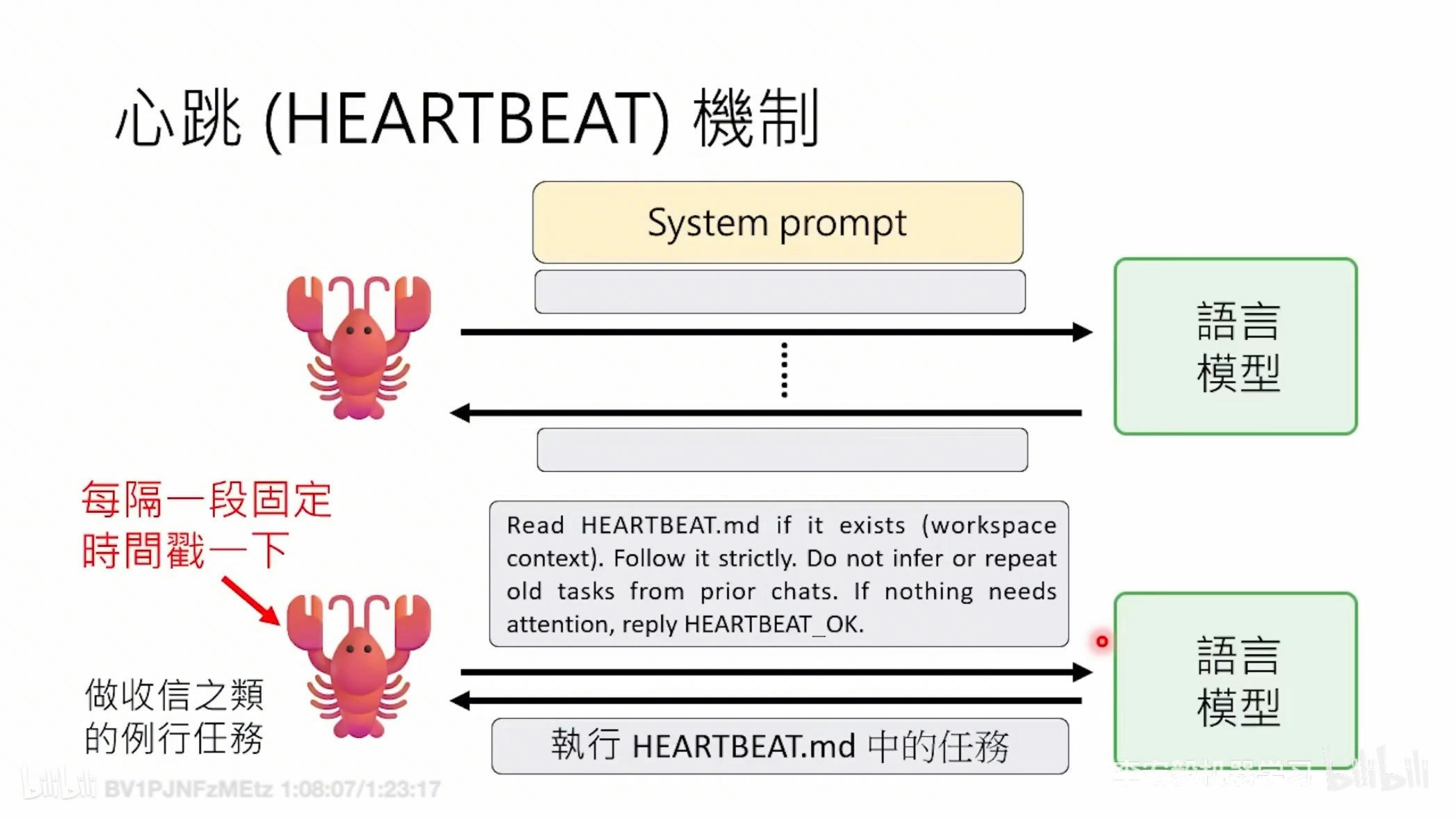 心跳是一个预设的间隔时间,代理会自主醒来,检查你要求它监控的任务列表,并决定发现的内容是否值得通过消息平台联系你。